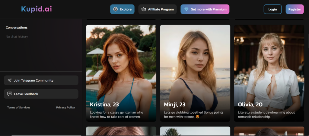 Kupid AI es una plataforma de chat que utiliza inteligencia artificial para crear mensajes virtuales realistas. ai arte chicas desnudas y compañeros a través de conversaciones interesantes.